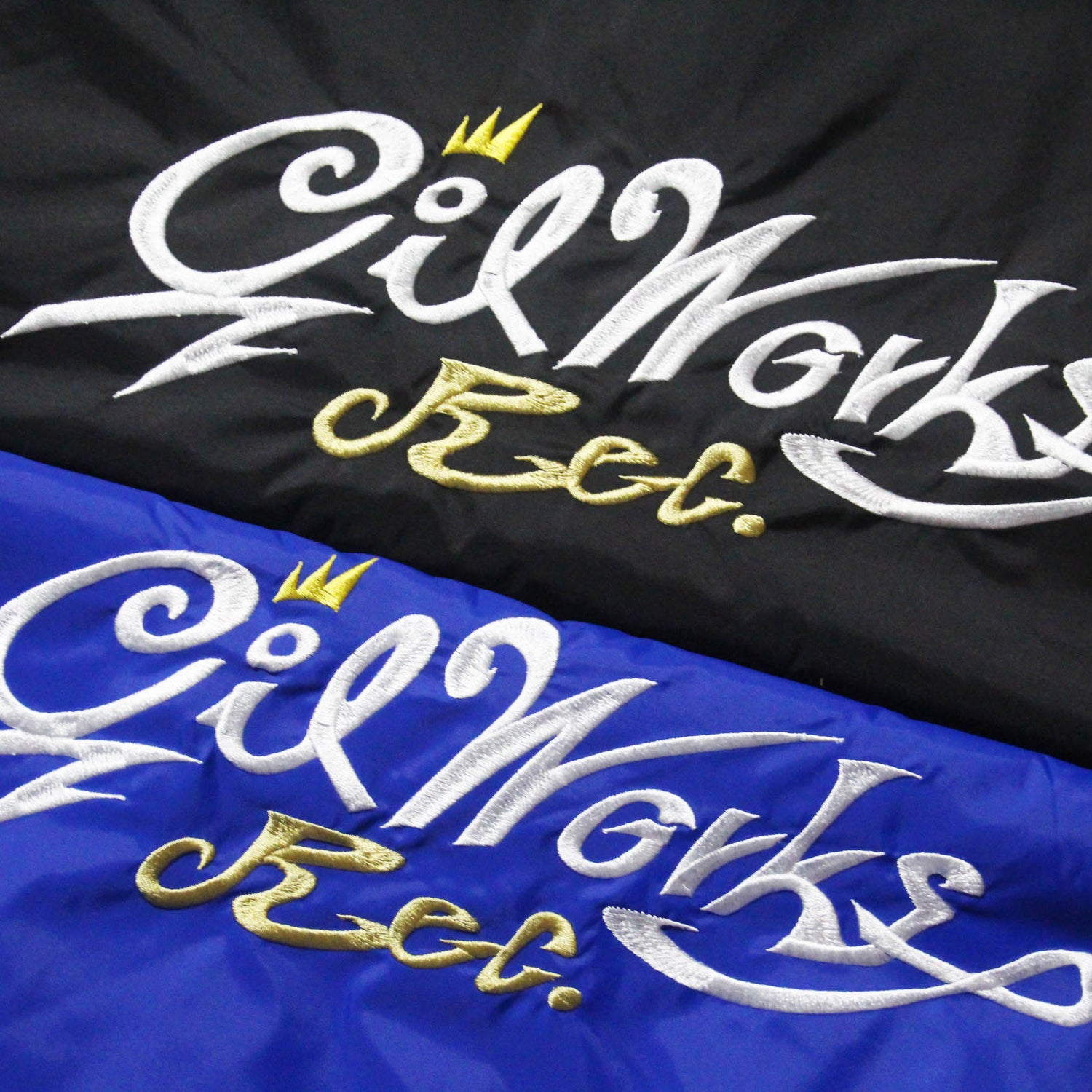 シンプルなOILWORKS刺繍と、背中の大きなOILWORKS REC刺繍が目をひきます。2色展開です。
