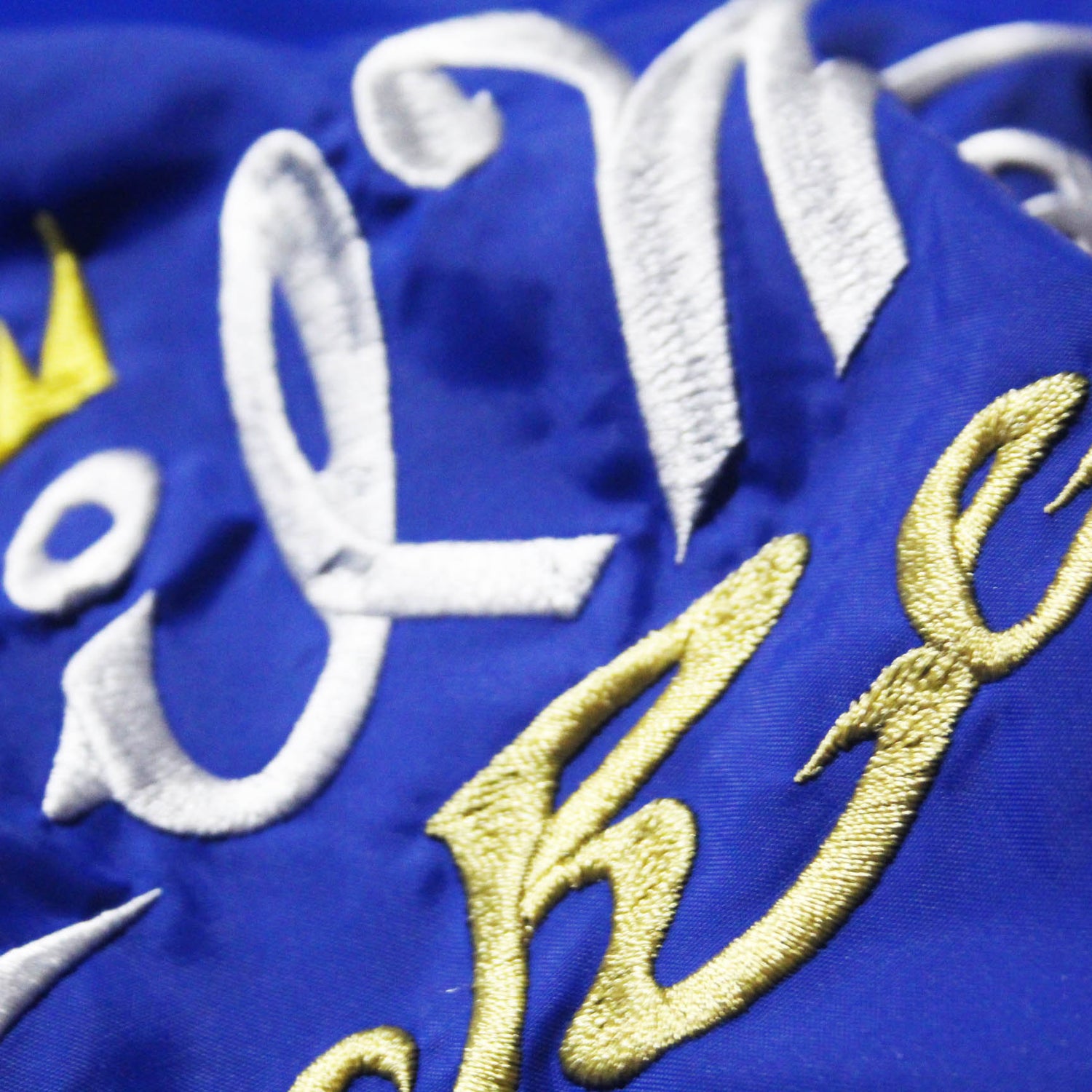 今回はフロントと背中に大きく刺繍がはいったナイロンコーチジャケット。